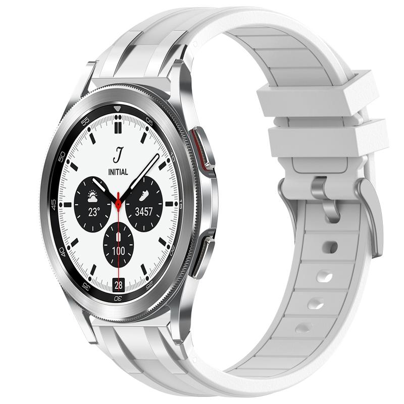 For Samsung Galaxy Watch 4 Classic 42 / 46mm 20mm Quick Release Silver Buckle Royal Silicone Watch Band(White)