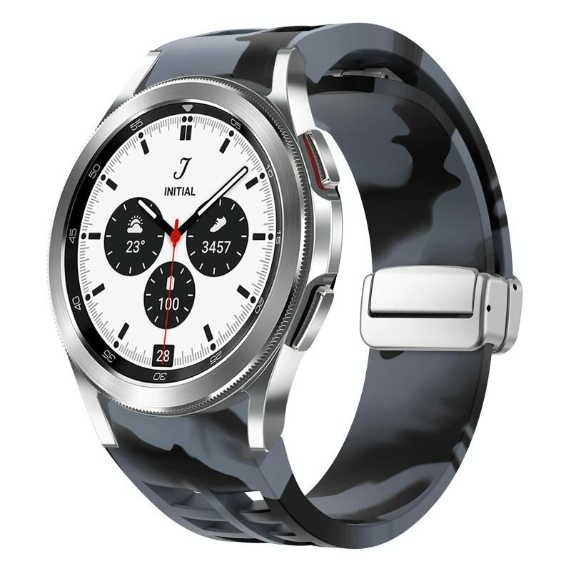 Για Samsung Galaxy Watch 4 Classic 42 / 46mm Richard μαγνητική πτυσσόμενη ασημένια πόρπη σιλικόνης ρολόι μπάντα ρολογιού (μαύρο γκρι καμουφλάζ)