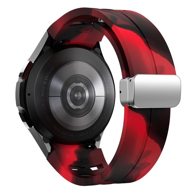 Για Samsung Galaxy Watch 4 Classic 42 / 46mm Richard μαγνητική πτυσσόμενη ασημένια πόρπη σιλικόνης (μαύρο κόκκινο καμουφλάζ)