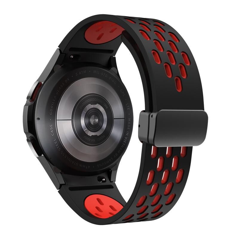 For Samsung Galaxy Watch 4 Classic 42 / 46mm Two Color Magnetic Folding Black Buckle Silicone Watch Band(Black Red)