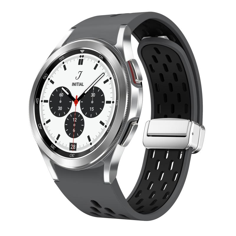 For Samsung Galaxy Watch 4 Classic 42 / 46mm Two Color Magnetic Folding Silver Buckle Silicone Watch Band(Coal Black)