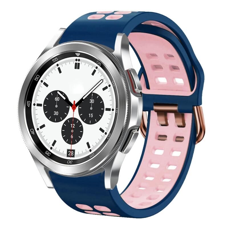 Για το Samsung Galaxy Watch 4 Classic 42mm 20mm αναπνεύσιμο σιλικόνης δύο χρωμάτων λουράκι ρολογιού (Midnight Blue+Pink)
