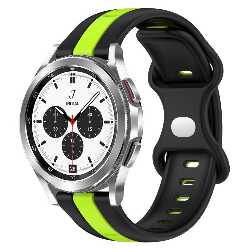 For Samsung Galaxy Watch 4 Classic 42mm 20mm Butterfly Buckle Two-Color Silicone Watch Band(Black+Green)
