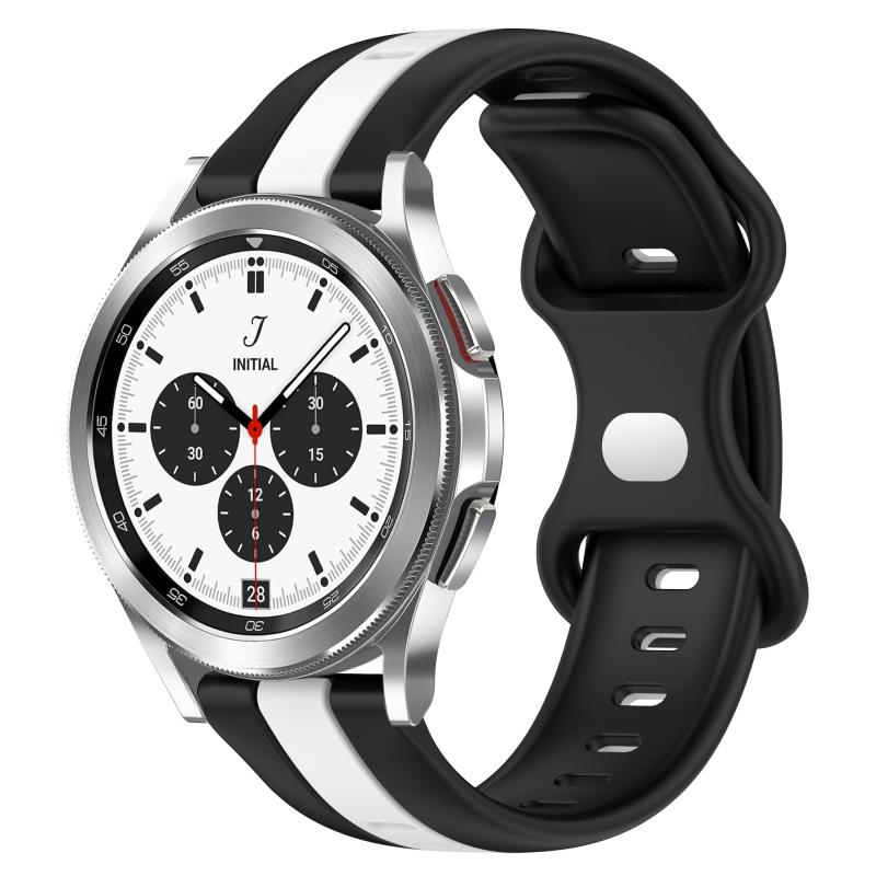 For Samsung Galaxy Watch 4 Classic 42mm 20mm Butterfly Buckle Two-Color Silicone Watch Band(Black+White)