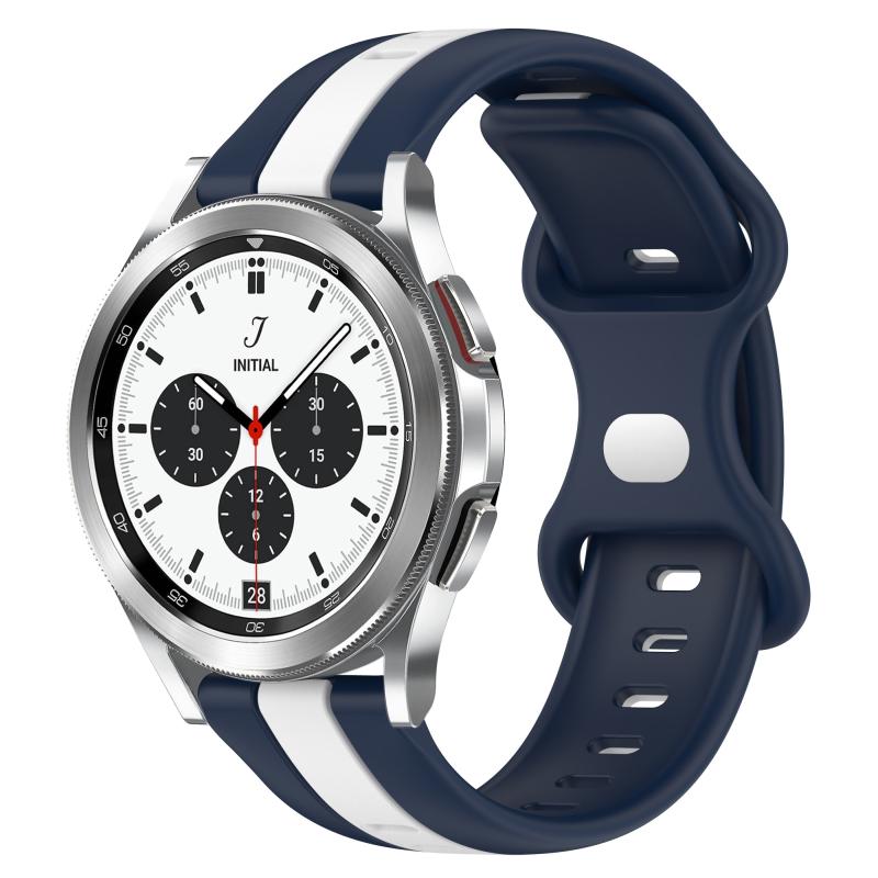 For Samsung Galaxy Watch 4 Classic 42mm 20mm Butterfly Buckle Two-Color Silicone Watch Band(White+Blue)