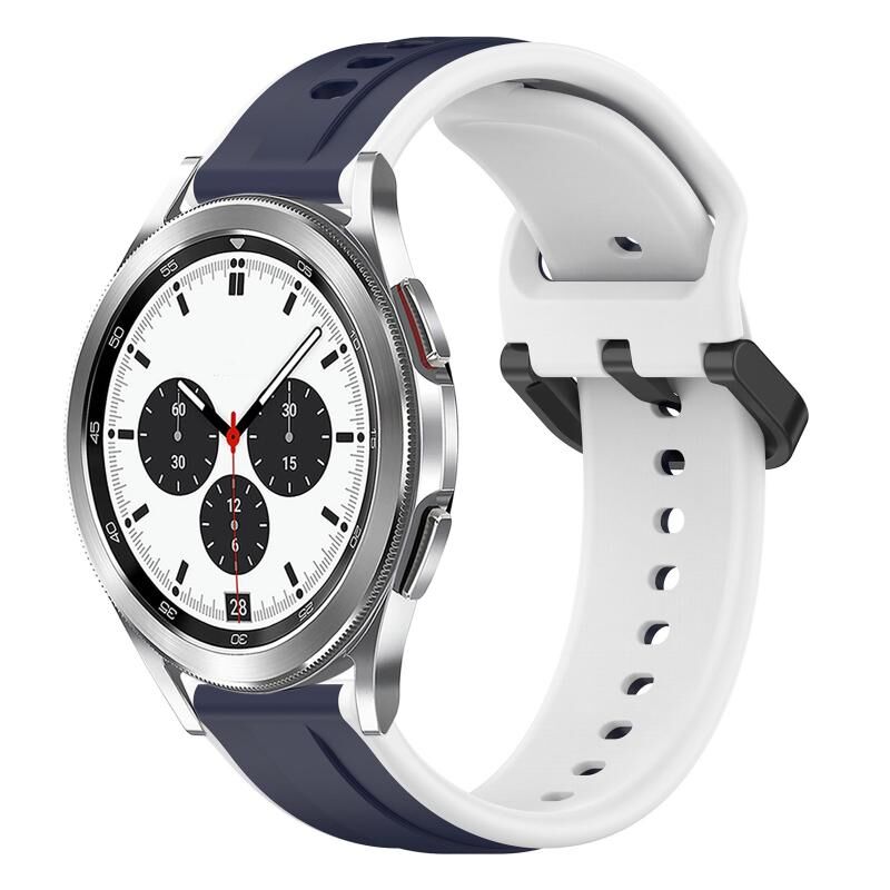 Για Samsung Galaxy Watch 4 Classic 42mm 20mm Κυρτό Λουράκι Ρολογιού Σιλικόνης Διχρωμίας (Μπλε Νυκτός + Λευκό)