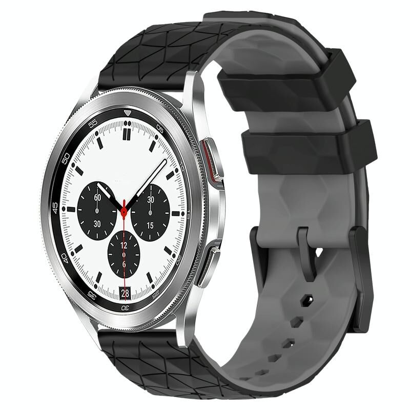 Για Samsung Galaxy Watch 4 Classic 42mm 20mm Δίχρωμο Σιλικόνης Ρεμένι Ρολογιού με Σχέδιο Ποδοσφαίρου (Μαύρο+Γκρι)