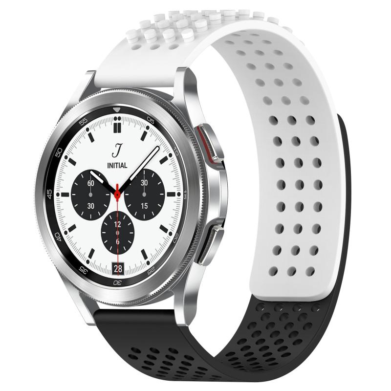 For Samsung Galaxy Watch 4 Classic 42mm 20mm Holes Breathable 3D Dots Silicone Watch Band(White+Black)