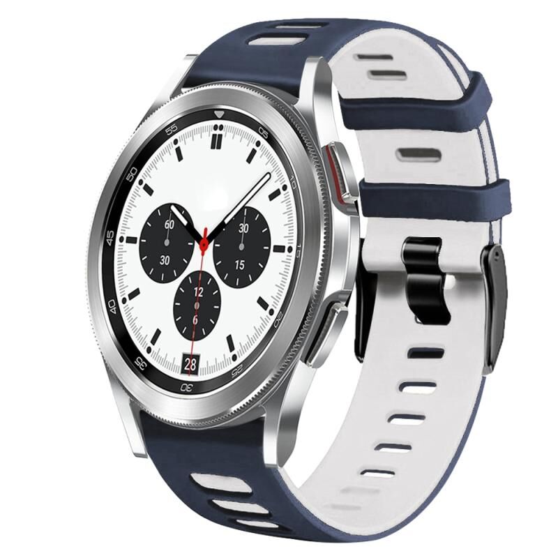 Για Samsung Galaxy Watch 4 Classic 42mm 20mm Δύο χρωμάτων σιλικόνης ρολόι μπάντα ρολογιού (Midnight Blue + Λευκό)