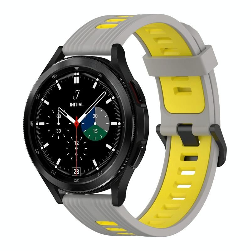 For Samsung Galaxy Watch 4 Classic 42mm 20mm Vertical Pattern Two-Color Silicone Watch Band(Grey+Yellow)