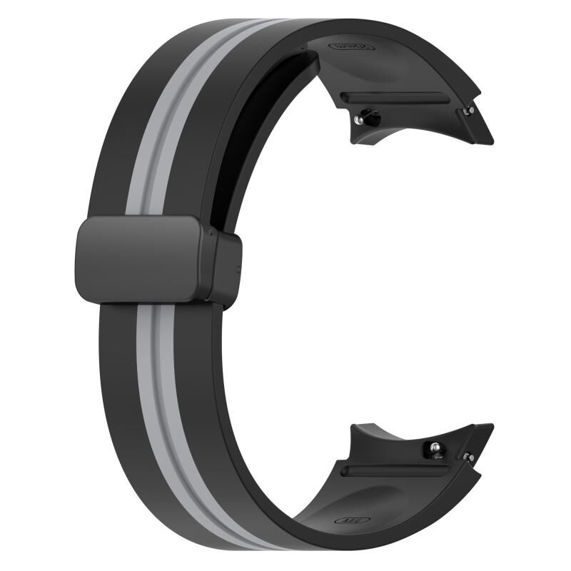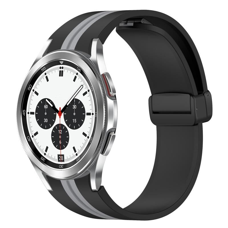 Για Samsung Galaxy Watch 4 Classic 42mm Πτυσσόμενο μαγνητικό κούμπωμα ζώνη σιλικόνης (μαύρο+γκρι)
