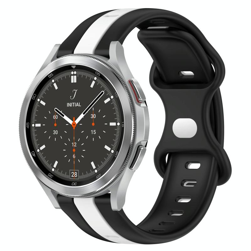 For Samsung Galaxy Watch 4 Classic 46mm 20mm Butterfly Buckle Two-Color Silicone Watch Band(Black+White)