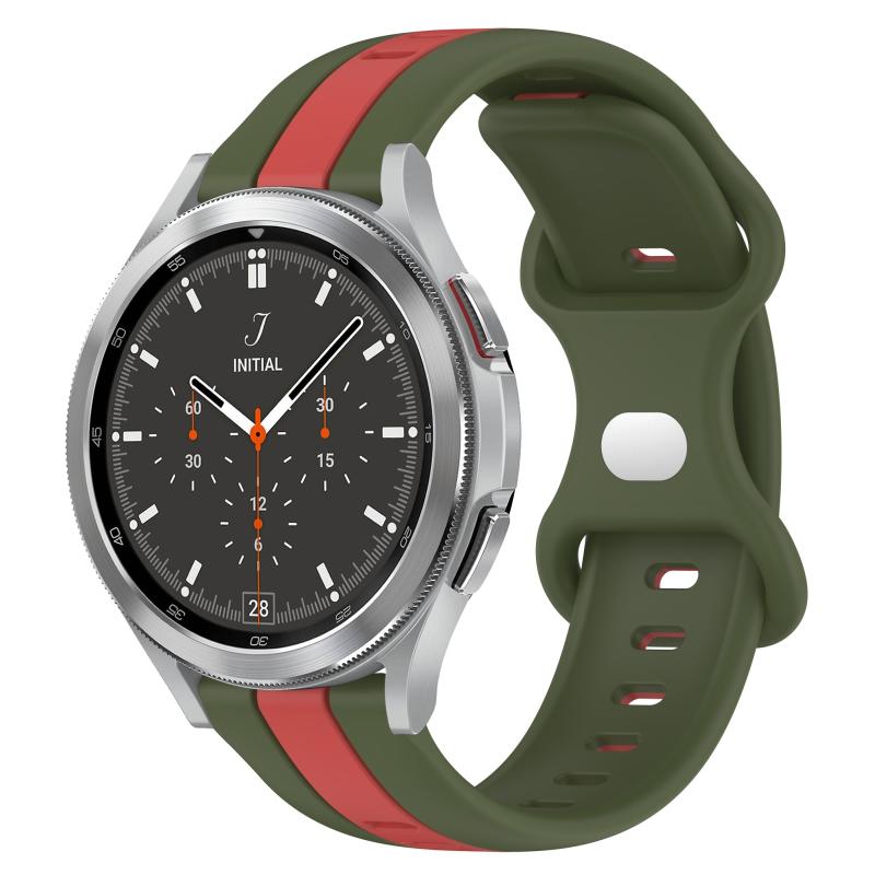 For Samsung Galaxy Watch 4 Classic 46mm 20mm Butterfly Buckle Two-Color Silicone Watch Band(Red+Army Green)