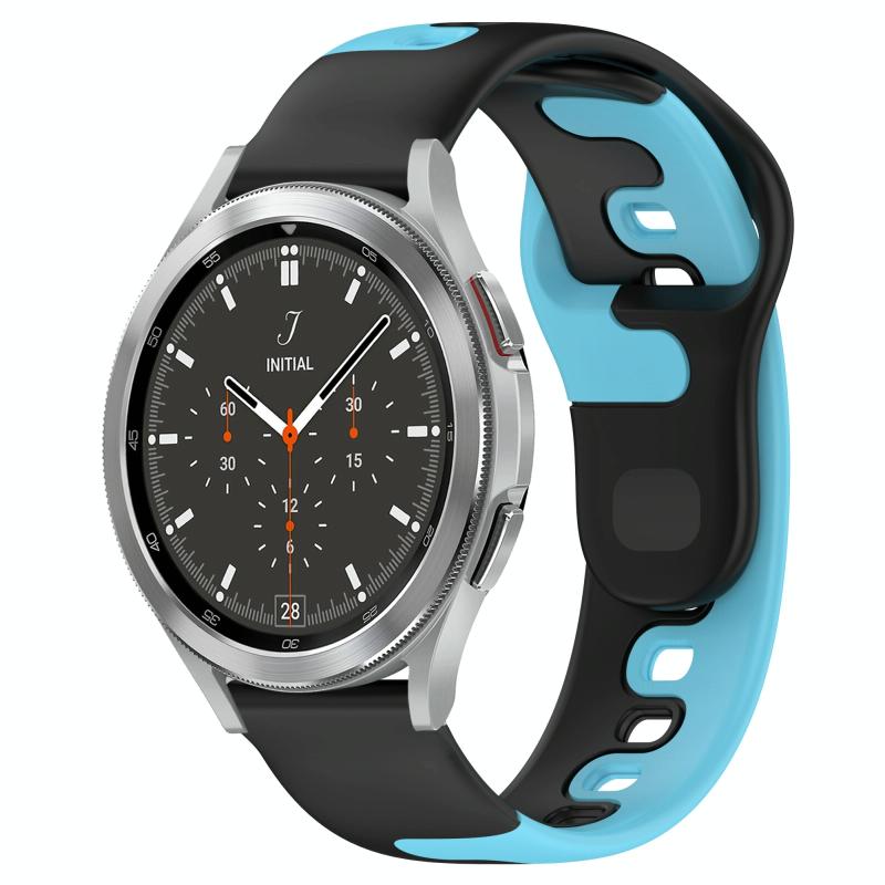 For Samsung Galaxy Watch 4 Classic 46mm 20mm Double Color Silicone Watch Band(Black+Blue)