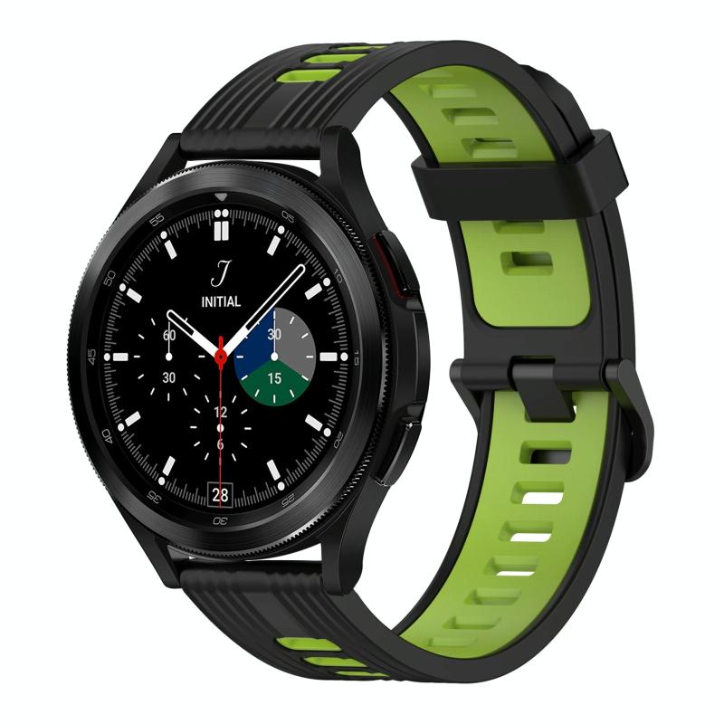 For Samsung Galaxy Watch 4 Classic 46mm 20mm Vertical Pattern Two-Color Silicone Watch Band(Black+Green)