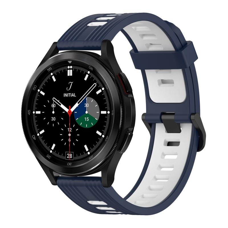 For Samsung Galaxy Watch 4 Classic 46mm 20mm Vertical Pattern Two-Color Silicone Watch Band(Dark Blue+White)