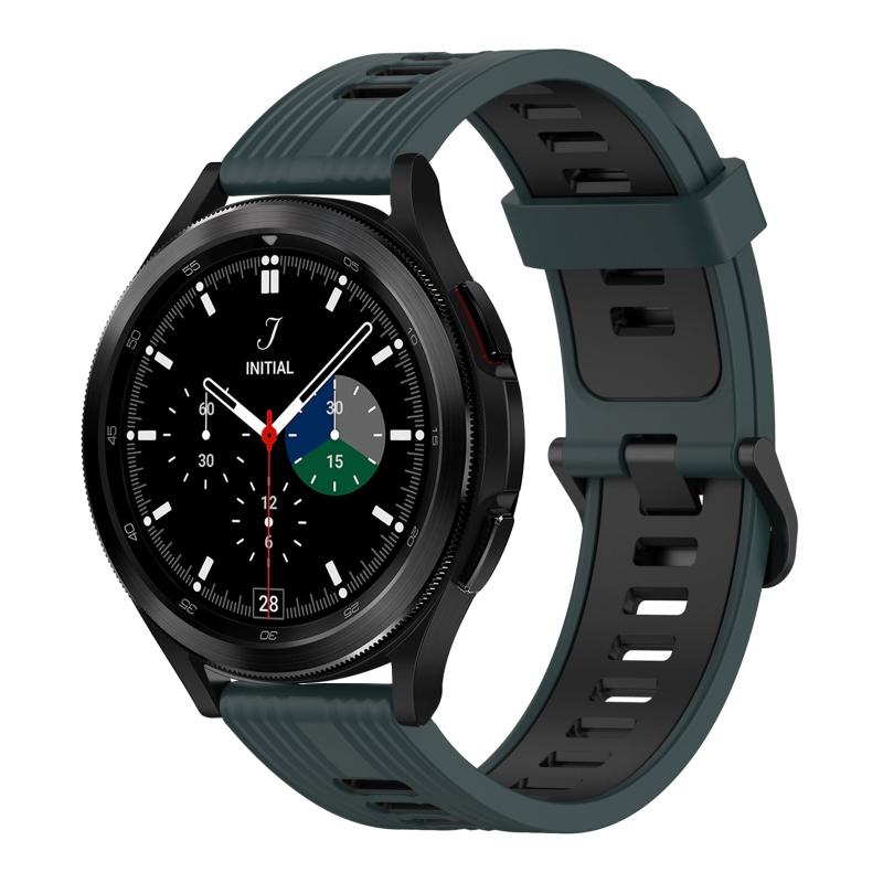 For Samsung Galaxy Watch 4 Classic 46mm 20mm Vertical Pattern Two-Color Silicone Watch Band(Olive Green + Black)