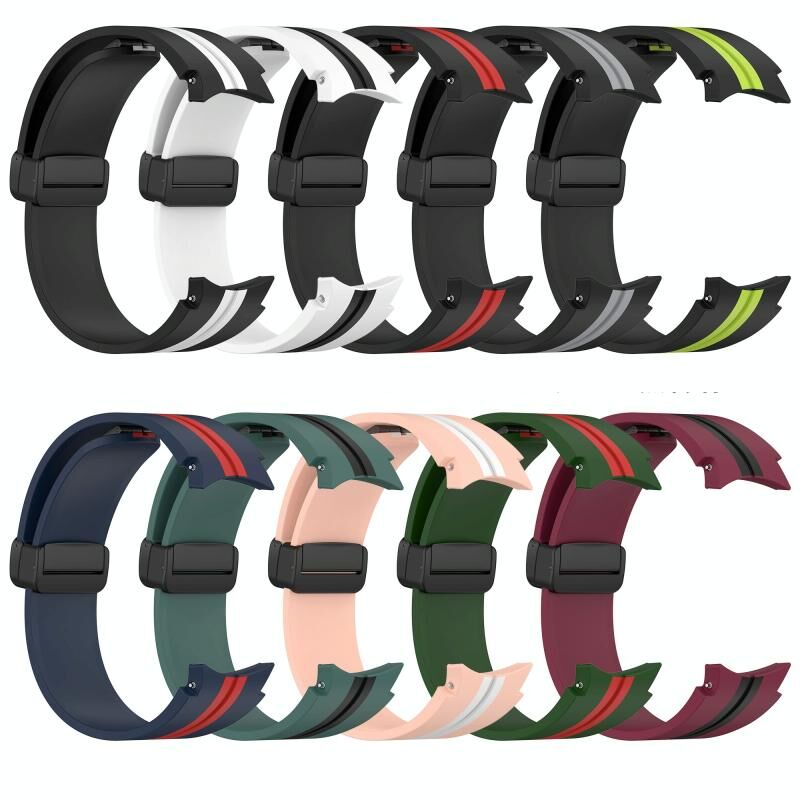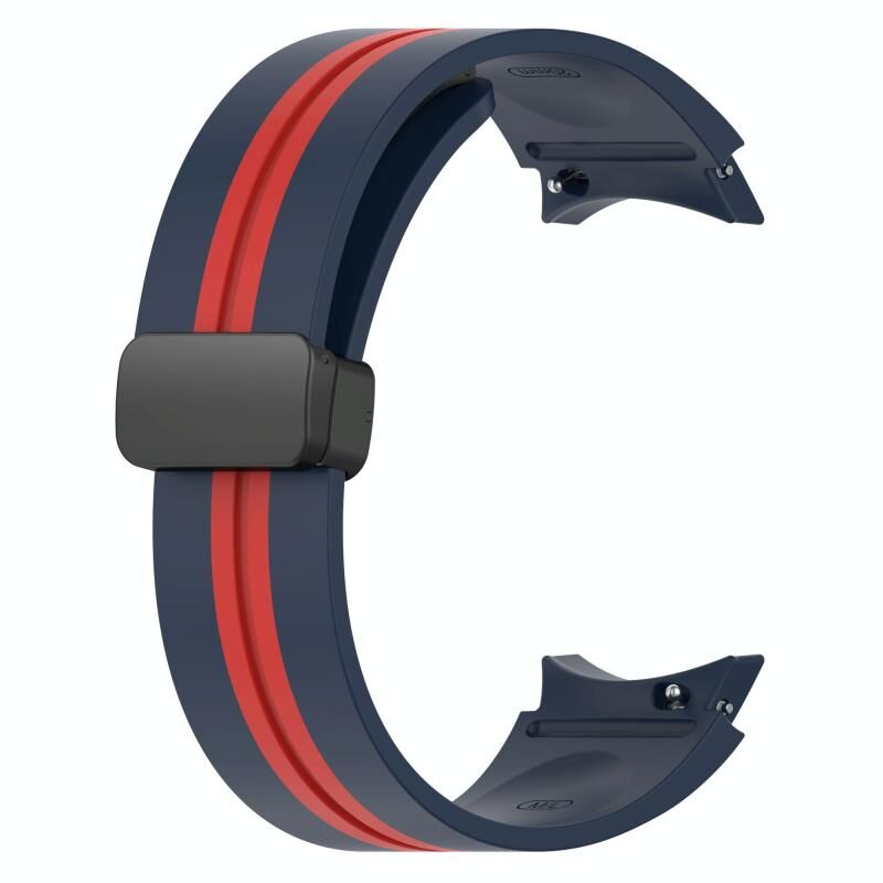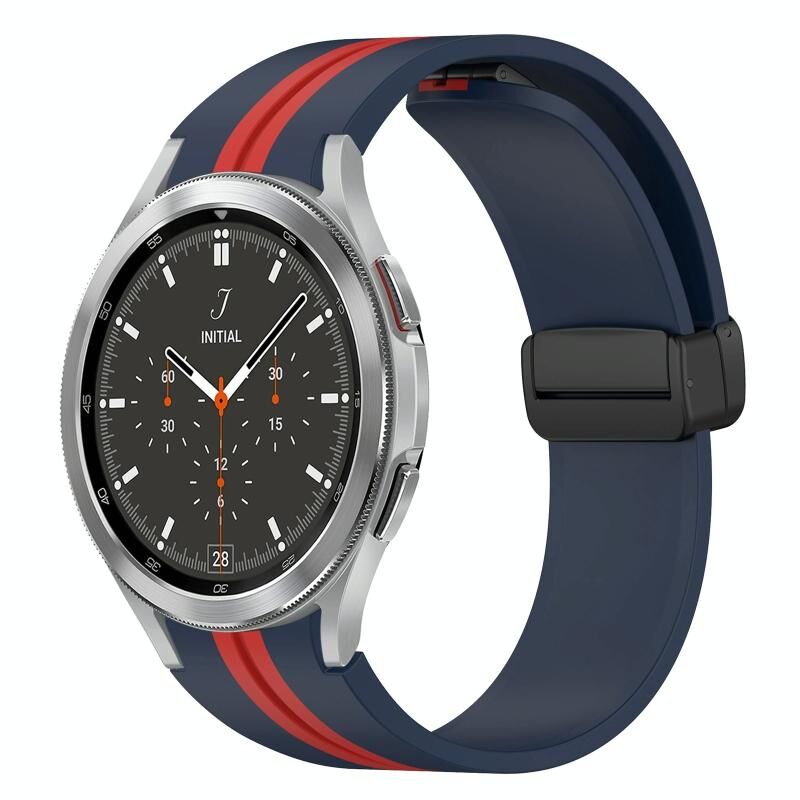 Για το Samsung Galaxy Watch 4 Classic 46mm Πτυσσόμενο μαγνητικό κούμπωμα ζώνη σιλικόνης (μπλε+κόκκινο)
