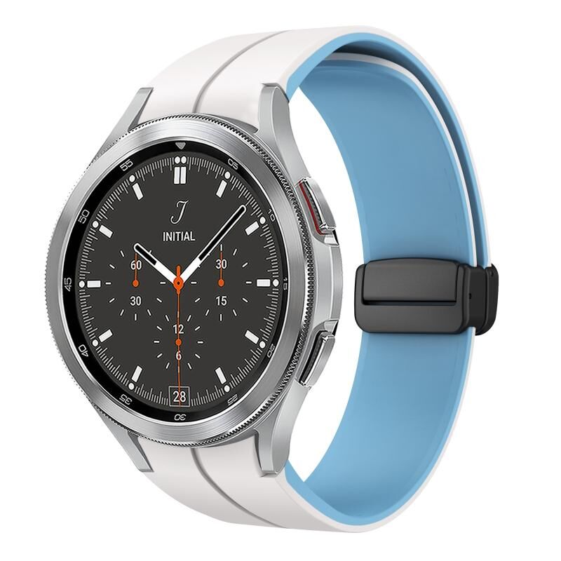 Για Samsung Galaxy Watch 4 Classic 46mm Δερμάτινο Λουράκι Σιλικόνης με Μαγνητική Αγκράφα Διπλής Χρωματικής Απόχρωσης (Πορτοκαλί+Μαύρο)