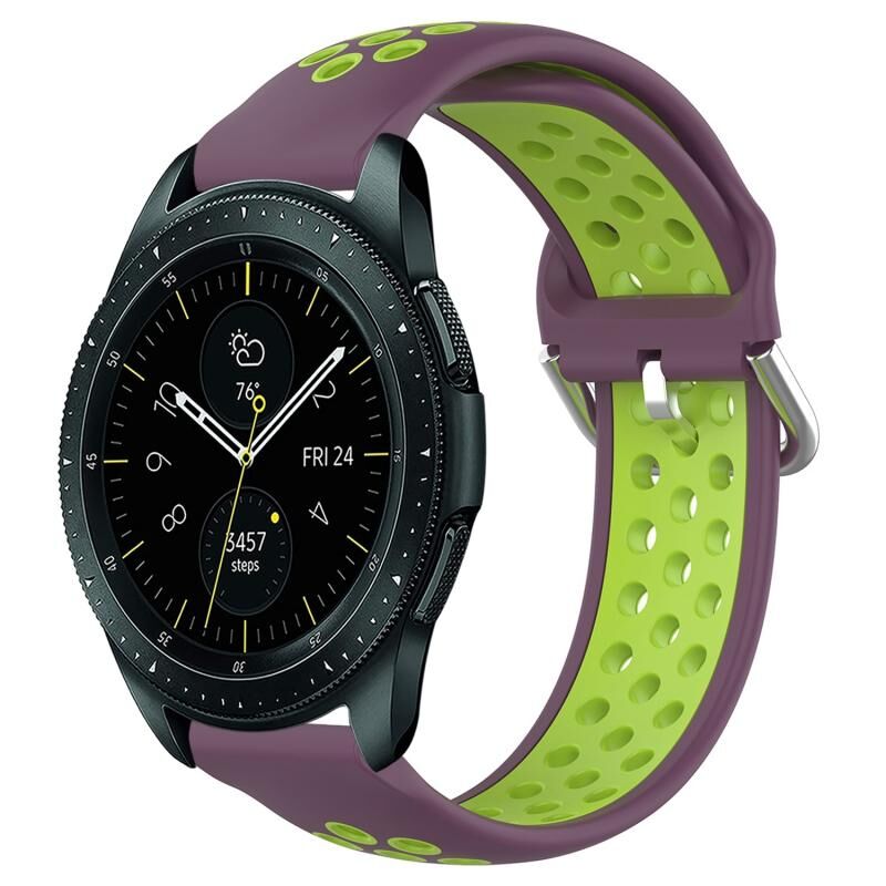 Για το Samsung Galaxy Watch 42mm 20mm διάτρητη αναπνεύσιμη αθλητική ζώνη ρολογιού σιλικόνης (μωβ+Lime)