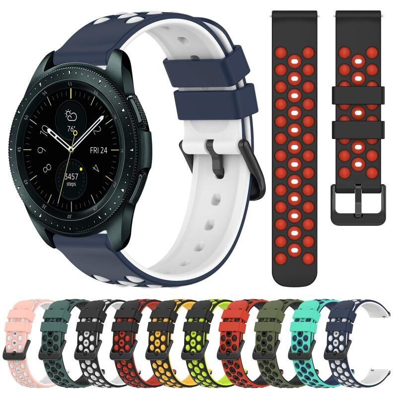 Για το Samsung Galaxy Watch 42mm 20mm Δύο χρωμάτων πορώδες λουράκι σιλικόνης (πράσινο στρατού + μαύρο)