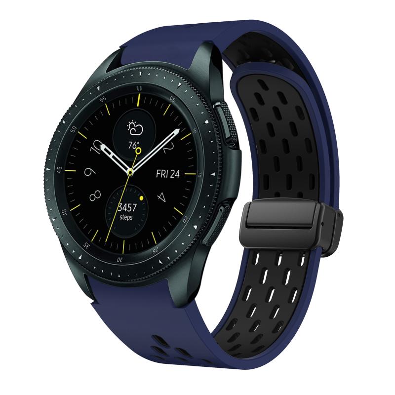 For Samsung Galaxy Watch 42mm Two Color Magnetic Folding Black Buckle Silicone Watch Band(Midnight Blue Black)
