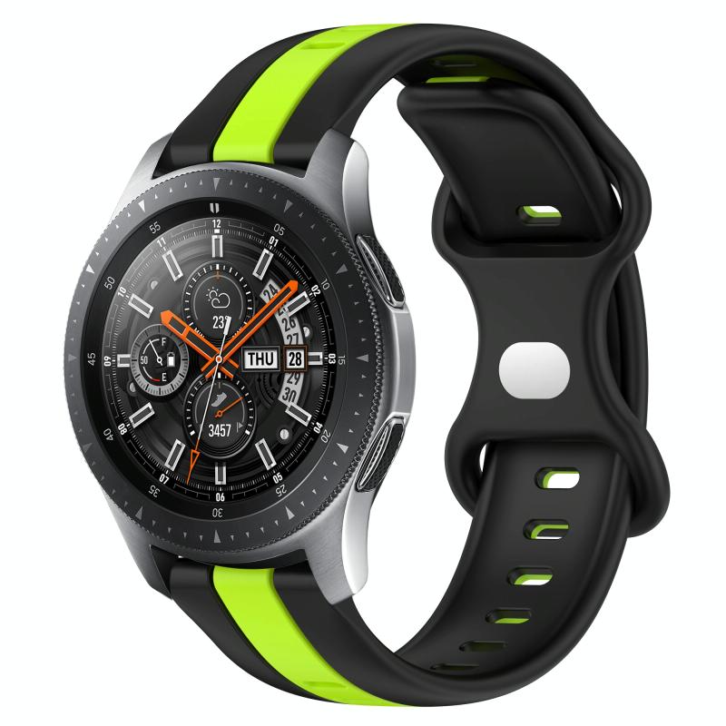 For Samsung Galaxy Watch 46mm 22mm Butterfly Buckle Two-Color Silicone Watch Band(Black+Green)