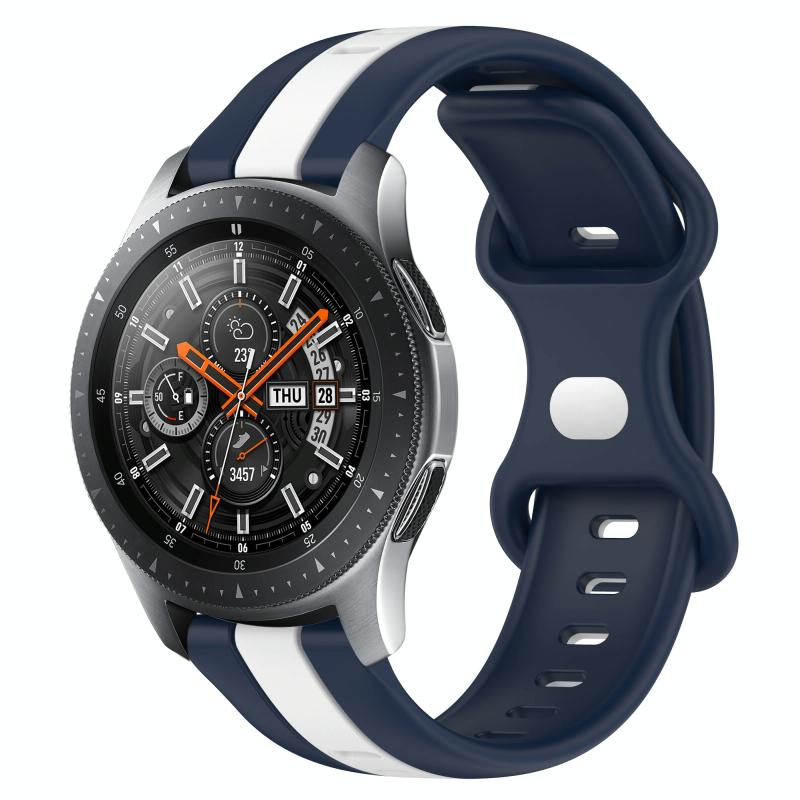 For Samsung Galaxy Watch 46mm 22mm Butterfly Buckle Two-Color Silicone Watch Band(White+Blue)