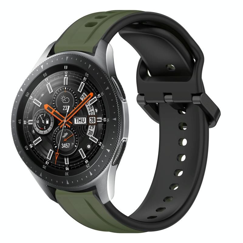 Για το Samsung Galaxy Watch 46mm 22mm 22mm Convex Loop Two-Color Silicone Watch Band(Dark Green+Μαύρο)