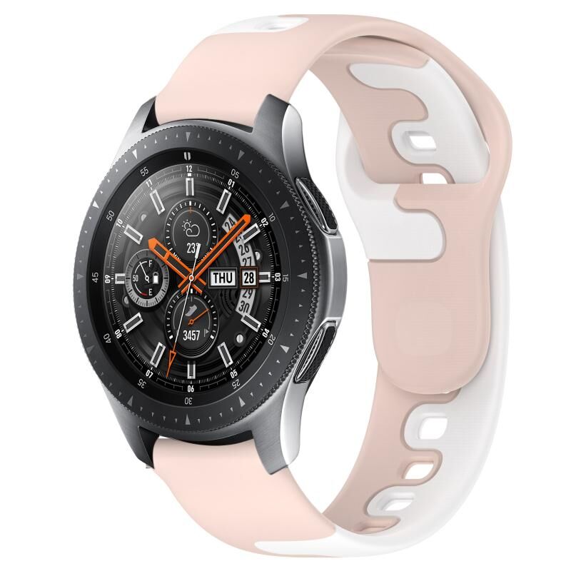 Για Samsung Galaxy Watch 46mm 22mm Διπλό χρώμα σιλικόνης ρολόι μπάντα ρολογιού (ροζ + λευκό)