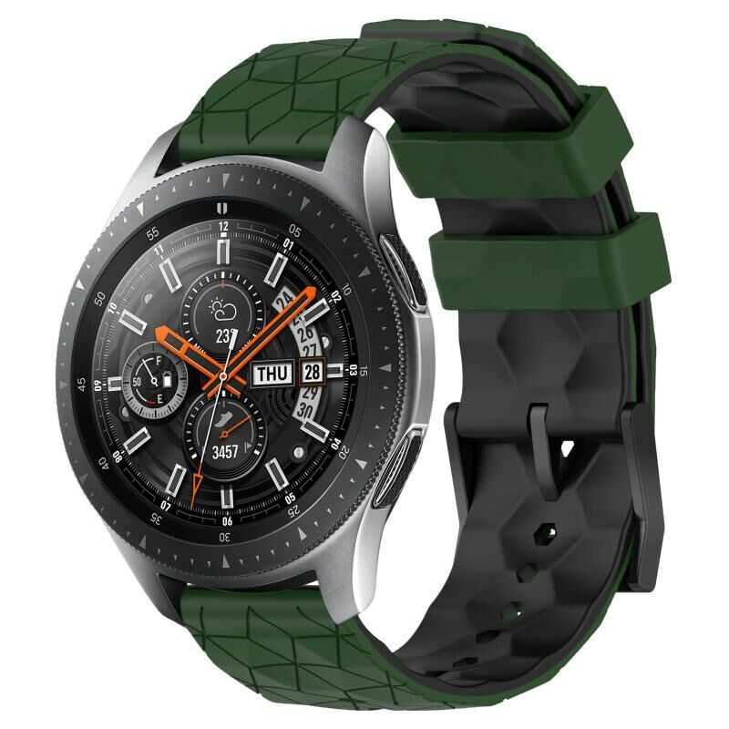 Για το Samsung Galaxy Watch 46mm 22mm ποδοσφαιρικό μοτίβο σιλικόνης δύο χρωμάτων (πράσινο + μαύρο)