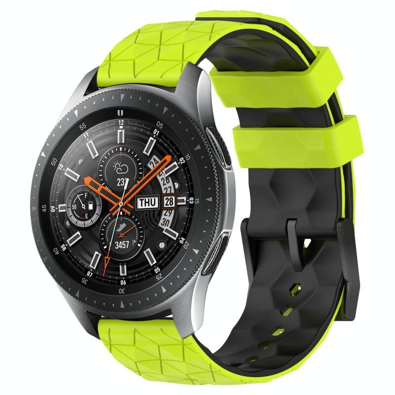 Για το Samsung Galaxy Watch 46mm 22mm ποδοσφαιρικό μοτίβο σιλικόνης δύο χρωμάτων (πράσινο + μαύρο)