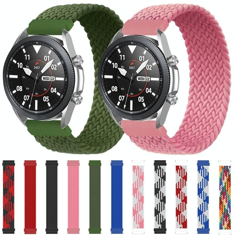 For Samsung Galaxy Watch 46mm Adjustable Nylon Braided Elasticity Watch Band, Size:165mm(Blue White)