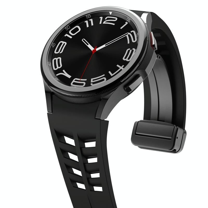 Για το Samsung Galaxy Watch 5 40 / 44mm Richard Μαγνητική πτυσσόμενη μαύρη ζώνη ρολογιού σιλικόνης με αγκράφα (Μαύρο)