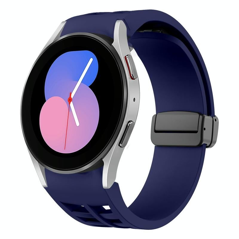 Για το Samsung Galaxy Watch 5 40 / 44mm Richard Μαγνητική πτυσσόμενη μαύρη ζώνη ρολογιού σιλικόνης με αγκράφα (Μπλε μεσάνυχτα)