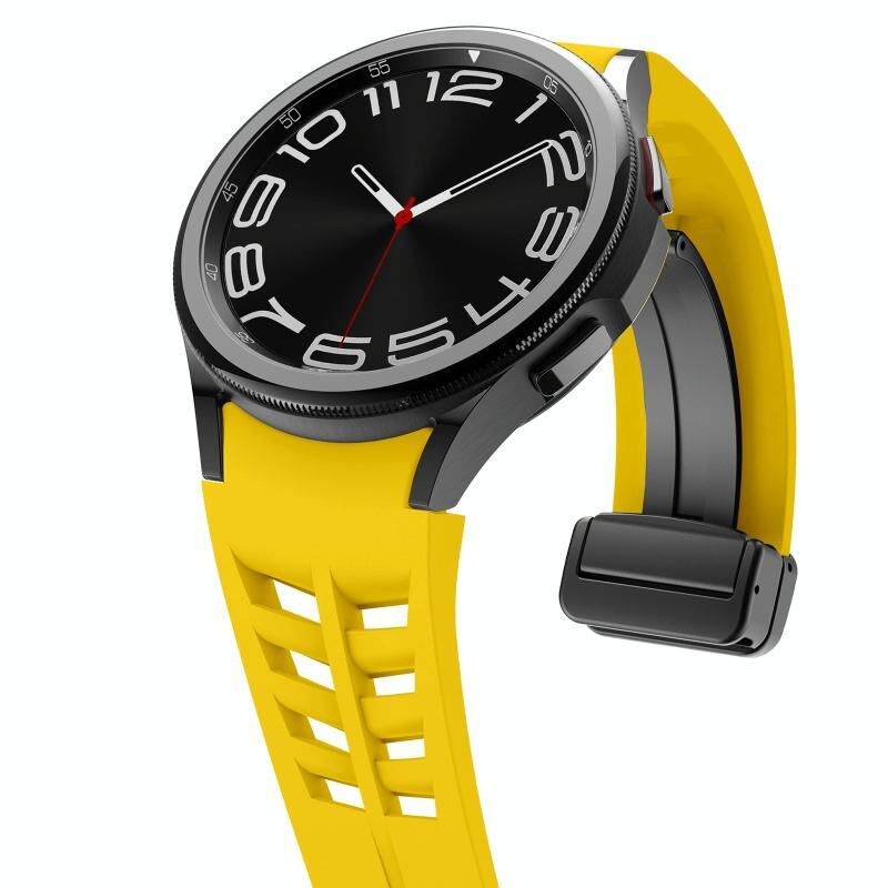 Για το Samsung Galaxy Watch 5 40 / 44mm Richard Μαγνητική πτυσσόμενη μαύρη ζώνη ρολογιού σιλικόνης με αγκράφα (κίτρινο)