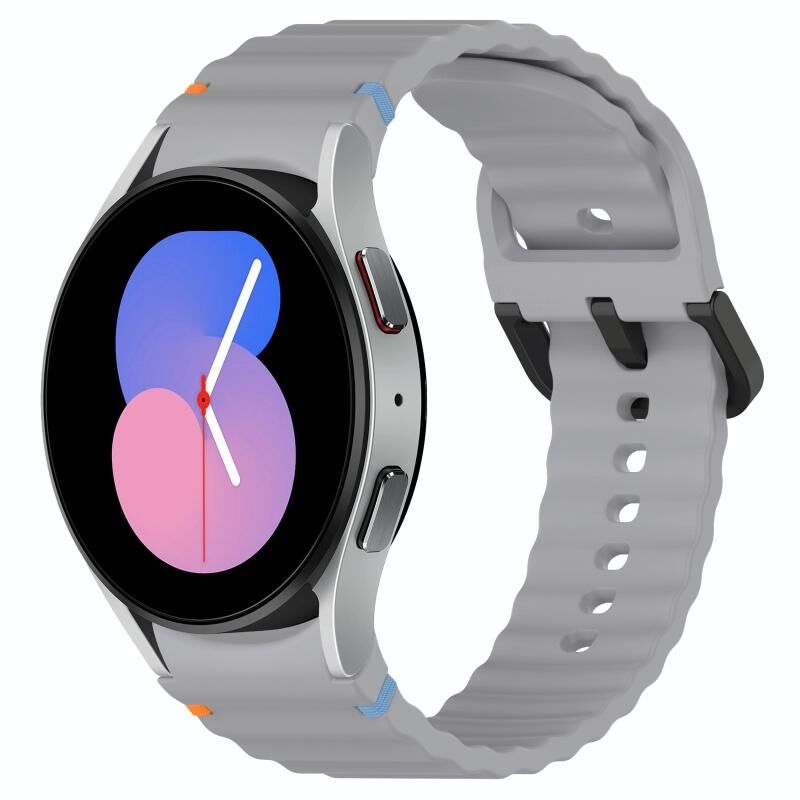 Για το Samsung Galaxy Watch 5 40 / 44mm Wavy Grain Stitched Black Buckle Silicone Watch Band (Space Gray)