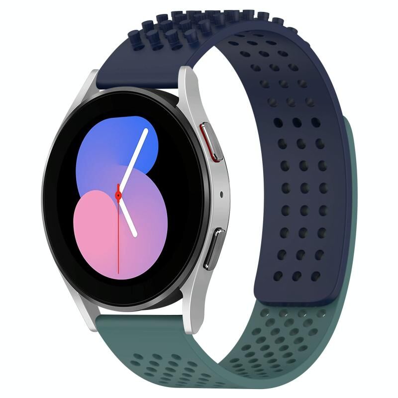Λουράκι Samsung Galaxy Watch 5 40mm 20mm Διάτρητο Σιλικόνης 3D (Μπλε Μεσονυχτί+Λαδί)