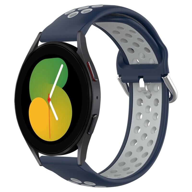 Για το Samsung Galaxy Watch 5 40mm 20mm διάτρητη αναπνεύσιμη αθλητική ζώνη ρολογιού σιλικόνης (μπλε + γκρι)
