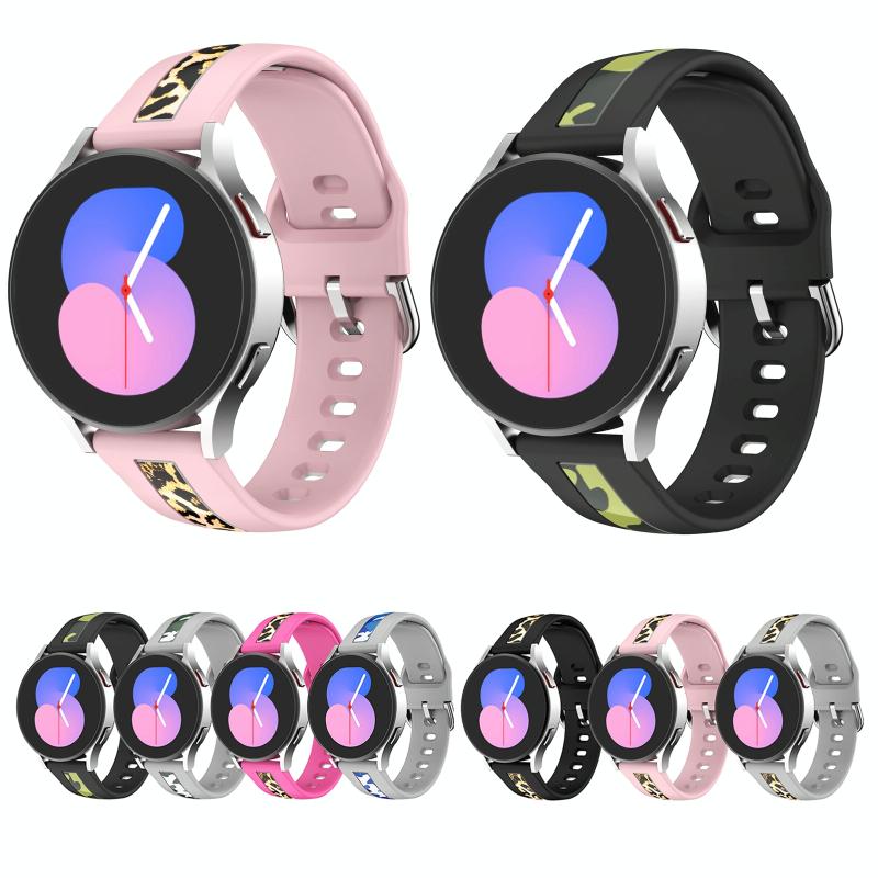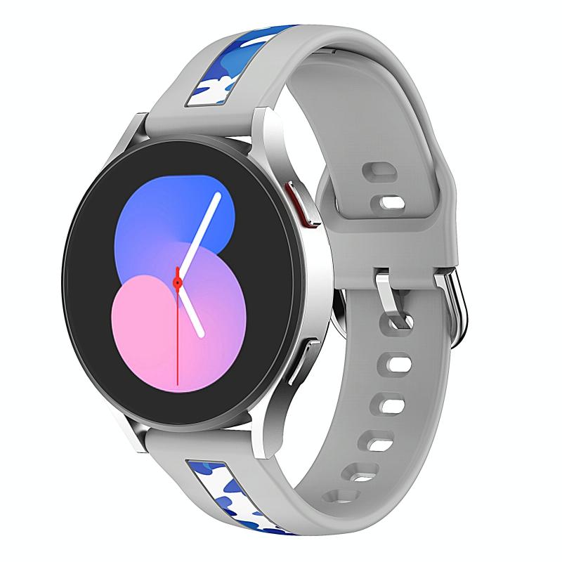 Για Samsung Galaxy Watch 5 40mm / 44mm Λουρί Σιλικόνης για Ρολόι με Εκτύπωση Κάθετης Γραμμής (Grey Blue Camouflage)