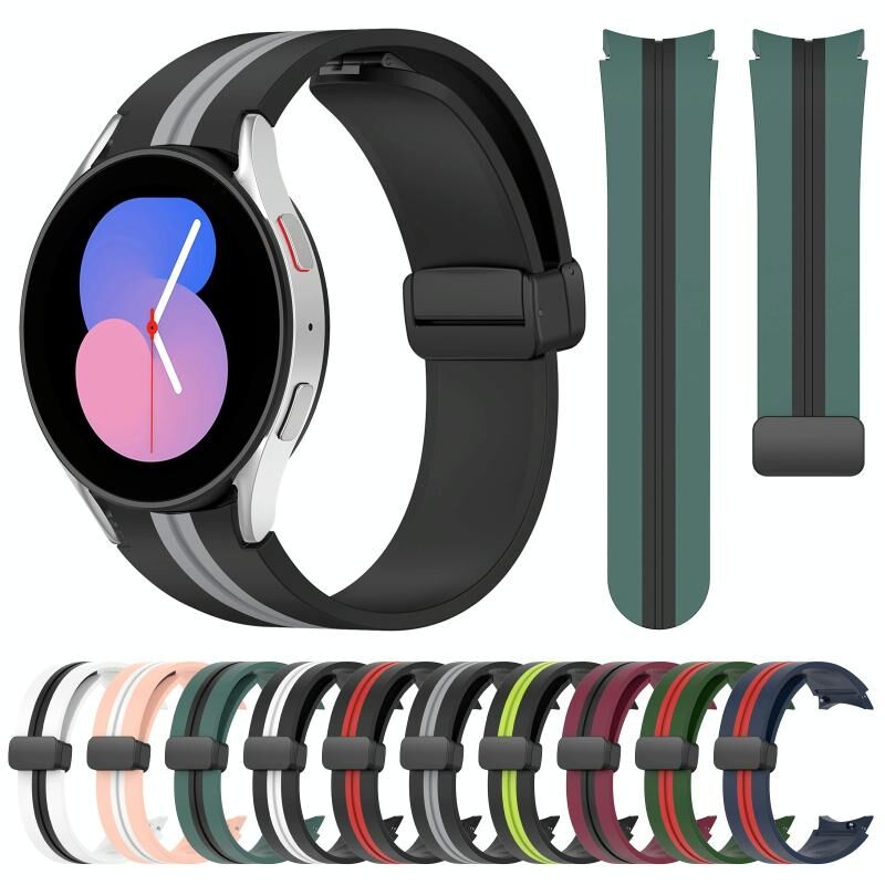 Για το Samsung Galaxy Watch 5 40mm Πτυσσόμενο μαγνητικό κούμπωμα ζώνη σιλικόνης (Μαύρο+Γκρι)