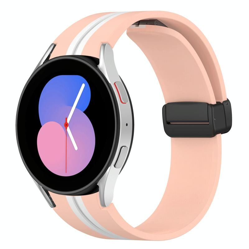 Για το Samsung Galaxy Watch 5 40mm Πτυσσόμενο μαγνητικό κούμπωμα ζώνη ρολογιού σιλικόνης (ροζ+λευκό)