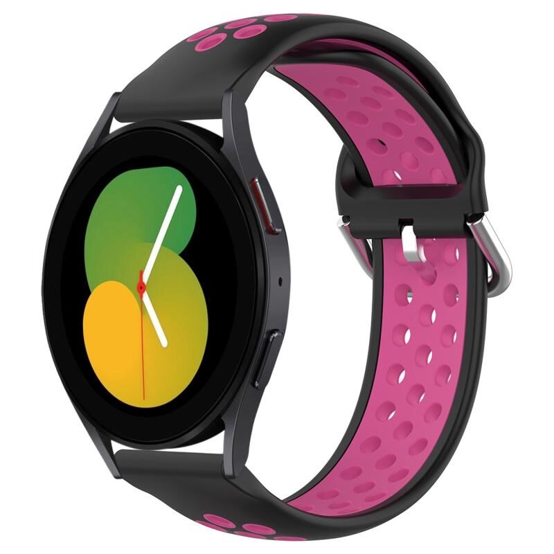 Για το Samsung Galaxy Watch 5 44mm 20mm διάτρητη αναπνεύσιμη αθλητική ζώνη ρολογιού σιλικόνης (Μαύρο + Ροζ Κόκκινο)