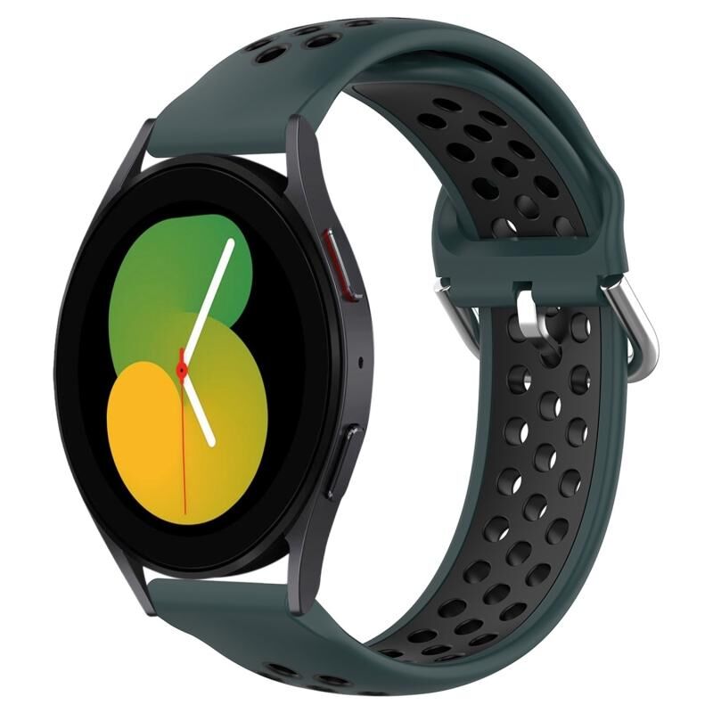 Για το Samsung Galaxy Watch 5 44mm 20mm διάτρητη αναπνεύσιμη αθλητική ζώνη ρολογιού σιλικόνης (πράσινο+μαύρο)