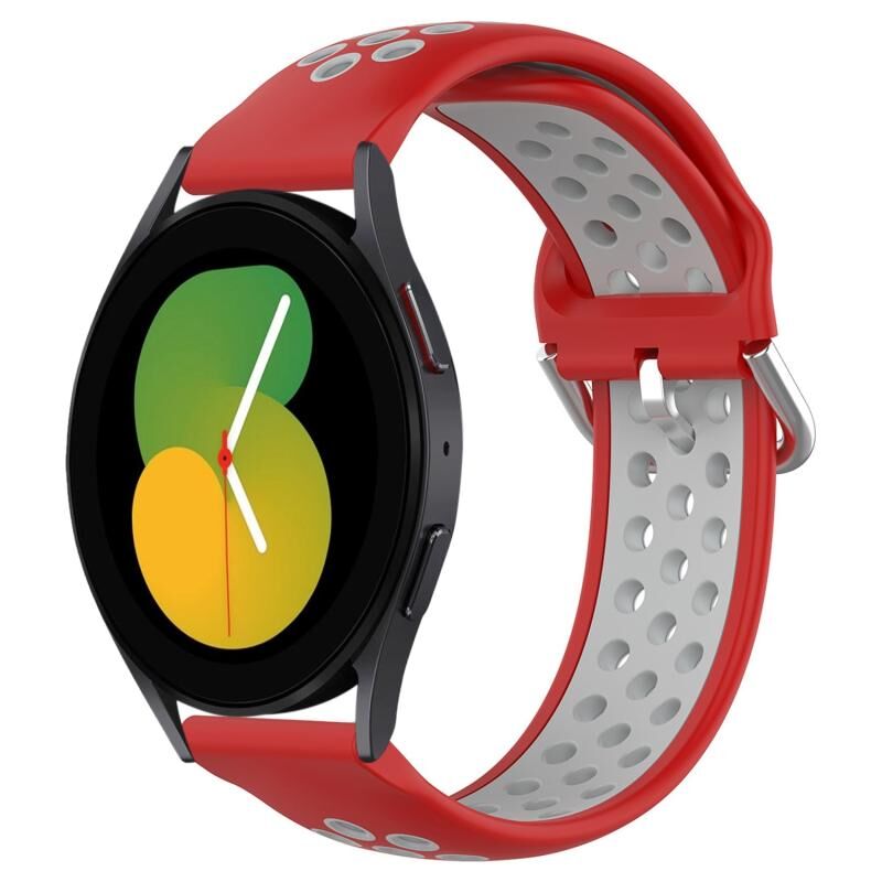 Για το Samsung Galaxy Watch 5 44mm 20mm διάτρητη αναπνεύσιμη αθλητική ζώνη ρολογιού σιλικόνης (κόκκινο + γκρι)
