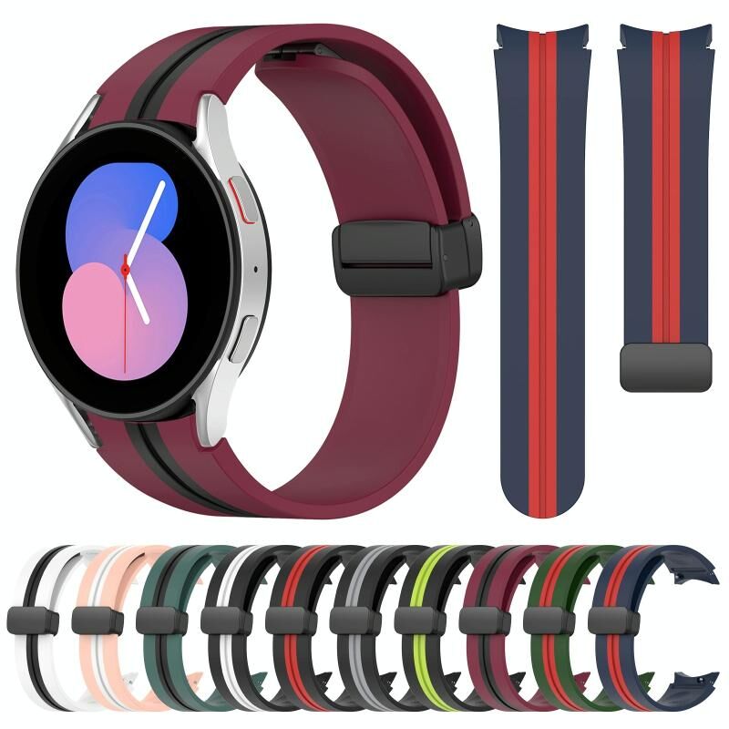Για το Samsung Galaxy Watch 5 44mm Πτυσσόμενο μαγνητικό κούμπωμα ζώνη σιλικόνης (μαύρο+κόκκινο)