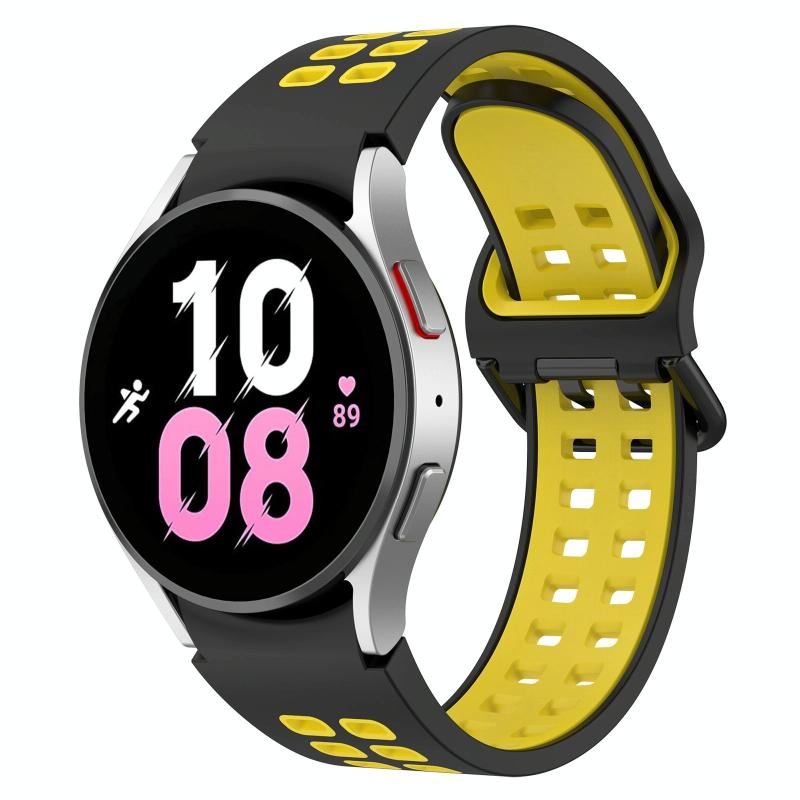 Για Samsung Galaxy Watch 5 44mm Δίχρωμο Αναπνεύσιμο Λουράκι Σιλικόνης (Μαύρο + Κίτρινο)