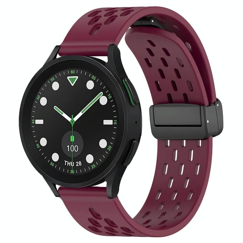 Για Samsung Galaxy watch 5 Golf Edition 20mm Πτυσσόμενο μαγνητικό κούμπωμα ζώνη σιλικόνης (κόκκινο κρασί)