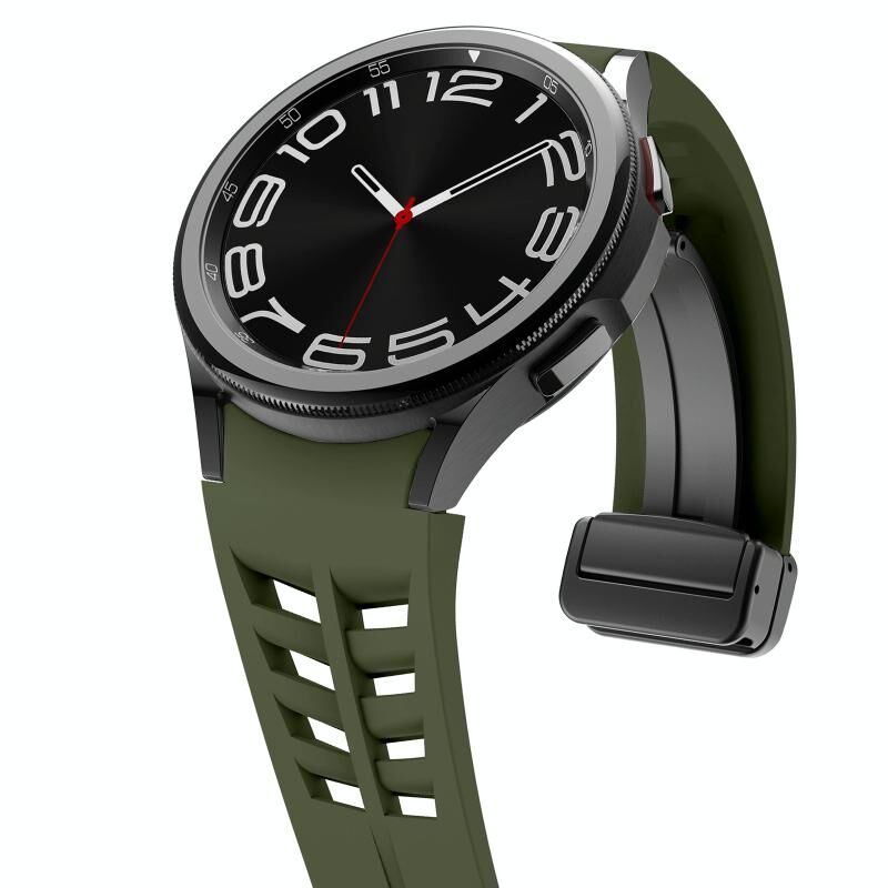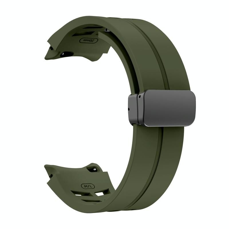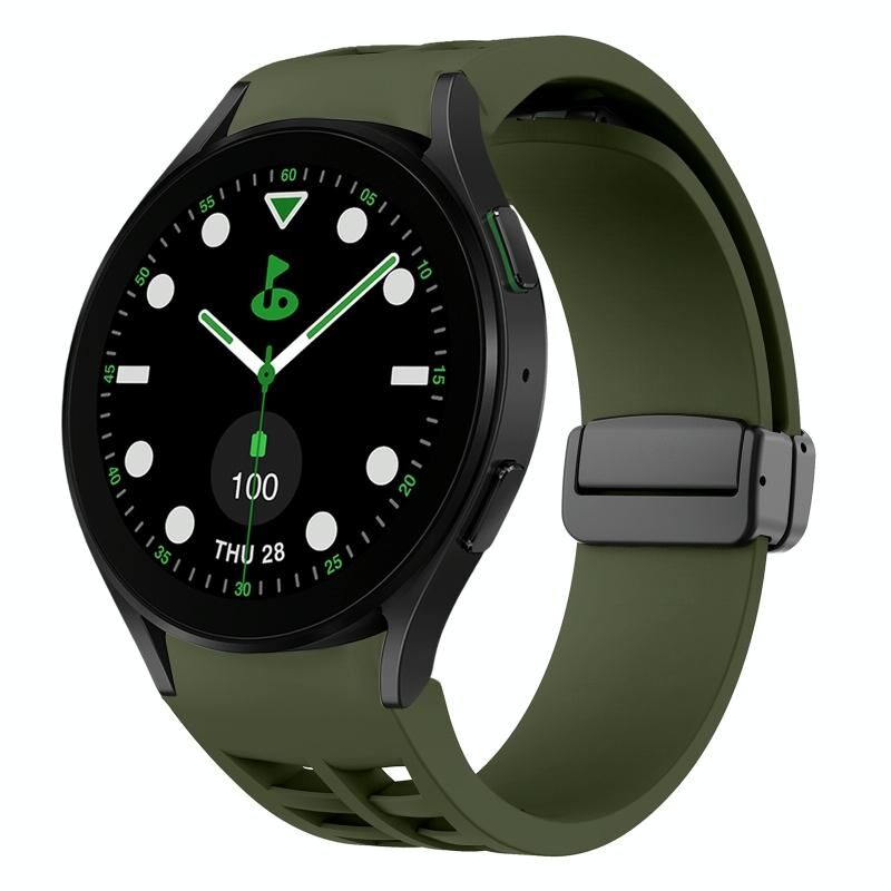 Για το Samsung Galaxy Watch 5 Golf Edition Richard Μαγνητική πτυσσόμενη μαύρη ζώνη σιλικόνης με αγκράφα (πράσινο στρατού)