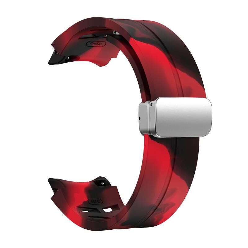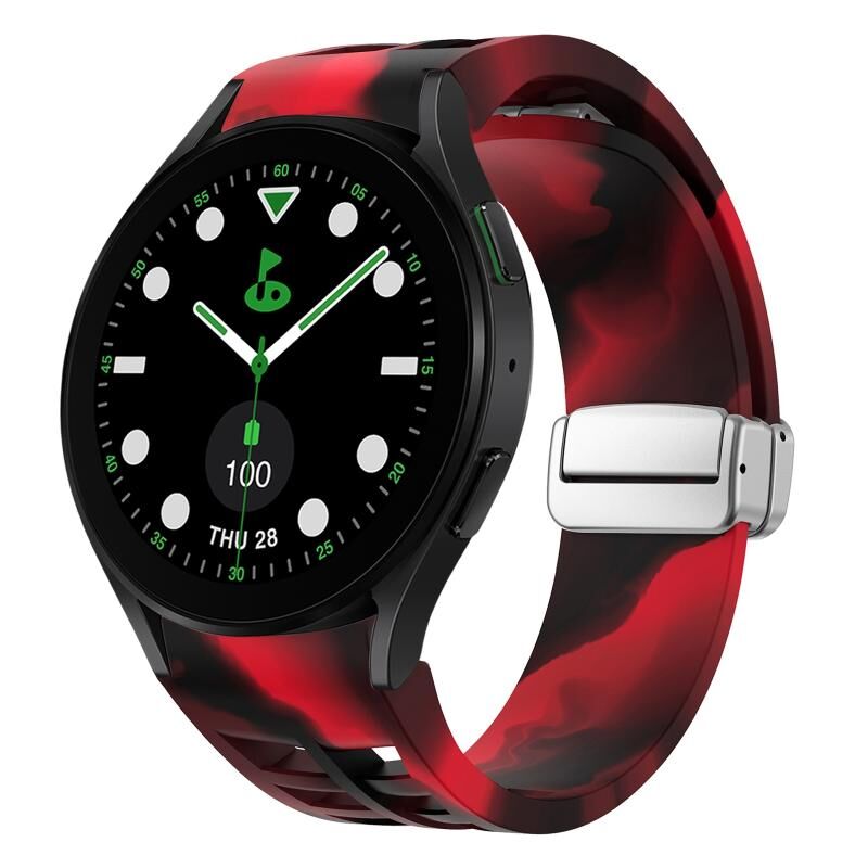 Για Samsung Galaxy Watch 5 Golf Edition Richard Μαγνητική πτυσσόμενη ασημένια πόρπη σιλικόνης (μαύρο κόκκινο καμουφλάζ)
